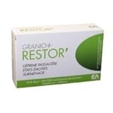 Le complément alimentaire EA Pharma Granio+ Restor' est préconisé en cas de déprime passagère, d'états émotifs et de surmenage, liés à des altérations des processus de transmission nerveuse dans le cerveau, qui peuvent être potentiellement induites par un apport alimentaire excessif en Oméga-6 (graisses animales) au détriment des Oméga-3 (graisses de poissons).EA Pharma Granio+ Restor' a été mis au point pour favoriser l'équilibre alimentaire entre Oméga-6 et Oméga-3 et apporter des oligo-éléments impliqués dans la perturbation de l'humeur.Sa formule est une association de :- Oméga-3 contenant des acides gras EPA et DHA, spécifiquement conçus pour agir sur les manifestations de la déprime passagère, les états émotifs et le surmenage ;- Sélénium, qui aide à restaurer le potentiel anti-oxydant des cellules, et de préserver les propriétés nutritionnelles des Oméga-3 ;- Magnésium contribuant à restaurer l'équilibre du système nerveux et musculaire, et aidant à lutter contre le stress.
